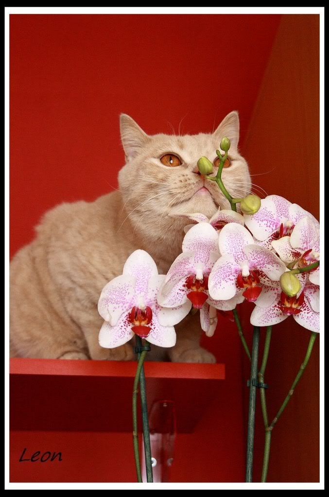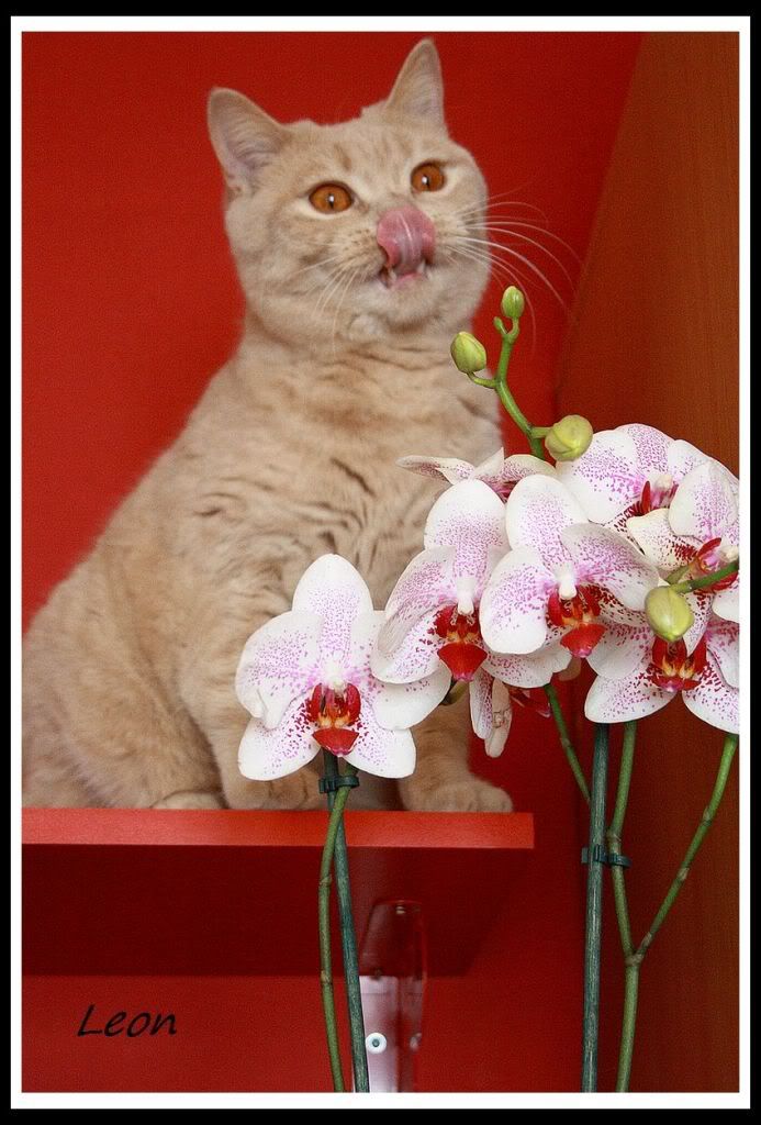 o godzinie nieludzkiej bo 5 rano Gabryś jakimś cudem zrzuca mojego storczyka w ceramicznej doniczce, która oczywiście się rozbija - tego, którego wczoraj Leon tak ładnie wąchał...