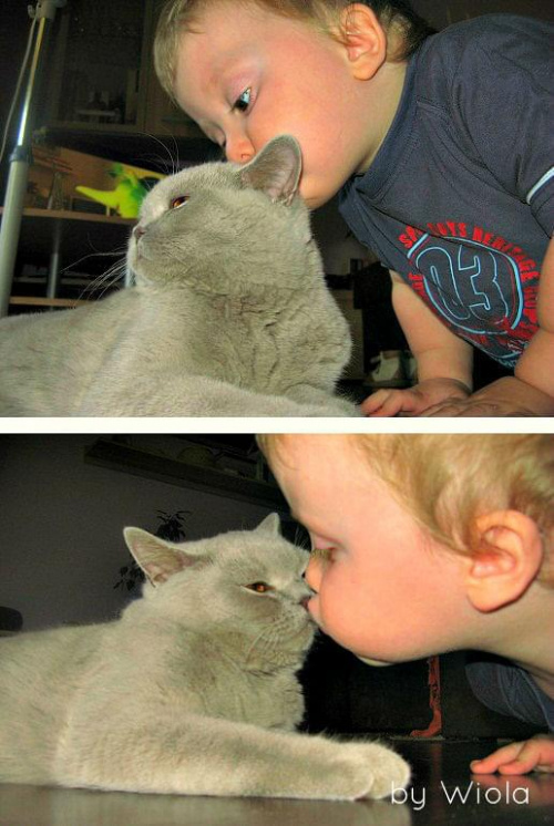 Nie obędzie się także bez serii całusków na dobry dzień <lol>, obaj się albo obwąchują albo całują i to taki codzienny już rytuał. Jak którys zapomina to drugi przypomina...