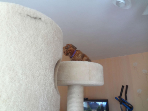 ostatnio dokręcaliśmy drapak od Rufiego z racji tego że co jakiś czas należy go dokręcić . Koteczka Bajka tak się "wystraszyła " , że chcemy jej ukochany drapak zabrać że pilnowała go okrutnie . " Nie dam sobie go zabrać " - więc cóż było robić , pozwoliliśmy jej dopilnować czy aby dobrze TŻ się wywiązał
