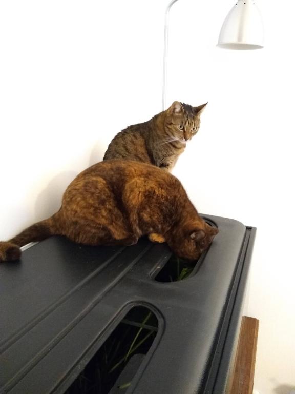 Od prawej Grupcio zwany Gapciem ze względu na hmmm, pewną ułomność umysłową, dalej Szaruś, kawał dziewczyny (prawie 6 kg i futerko się nie wylewa) i moja kochana przyszła teściowa Ala: